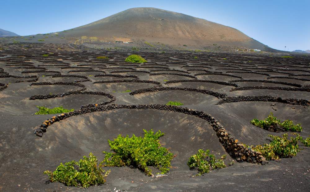 Im Norden der Insel, zwischen den Gemeinden Haría und Teguise, befindet sich ein Weinanbaugebiet mit dem niedrigsten Ertrag pro Hektar, das aufgrund seiner frühen Ernte weltweit einzigartig ist.
